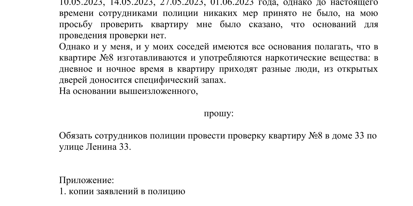 - Сведения о заявителе (ФИО, телефон, обратный адрес для ответа);