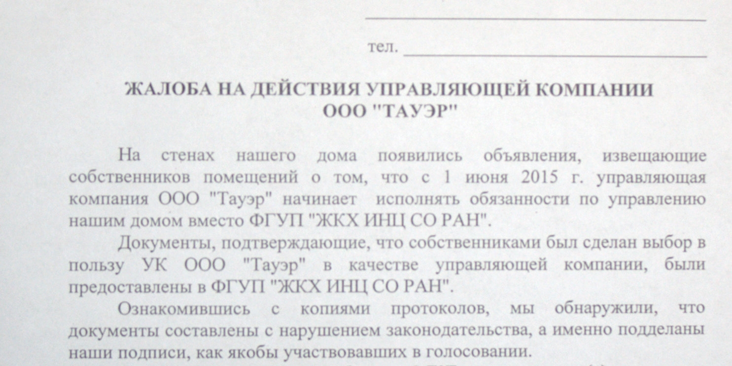 Содержание жалобы