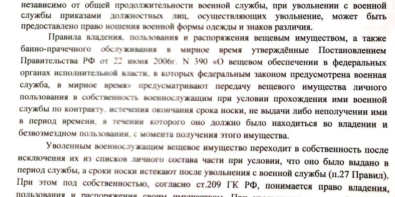Законы страны определяют не только обязанности военнослужащих, но и их права. В тексте контракта указаны обязательства государства по отношению к военнослужащему. Существенные нарушения условий контракта со стороны Минобороны не редкость, но выиграть судебный процесс по взысканию убытков с государства довольно сложно. Значение таких нарушений, как невозможность осуществления военнослужащим гарантированных ему прав, использования социальных гарантий военнослужащим и его семьей, может быть определено судом и вынесено решение, дающее право на расторжение контракта. Арбитраж рассматривает каждую апелляцию в индивидуальном порядке и выносит определение на основании всех представленных доказательств. Если военные констатируют нарушения со стороны Минобороны, выразившиеся в: