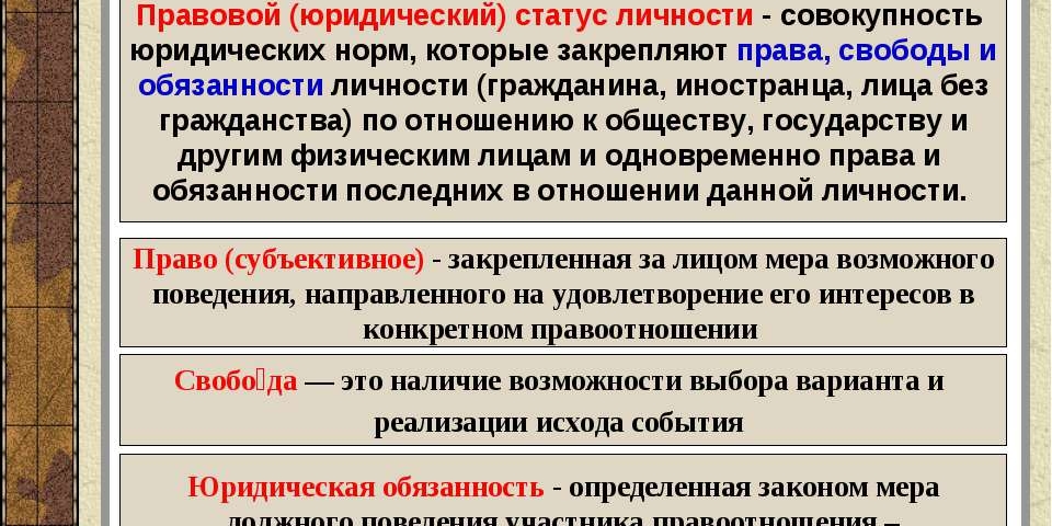 Правовой статус лица: понятие, структура, виды
