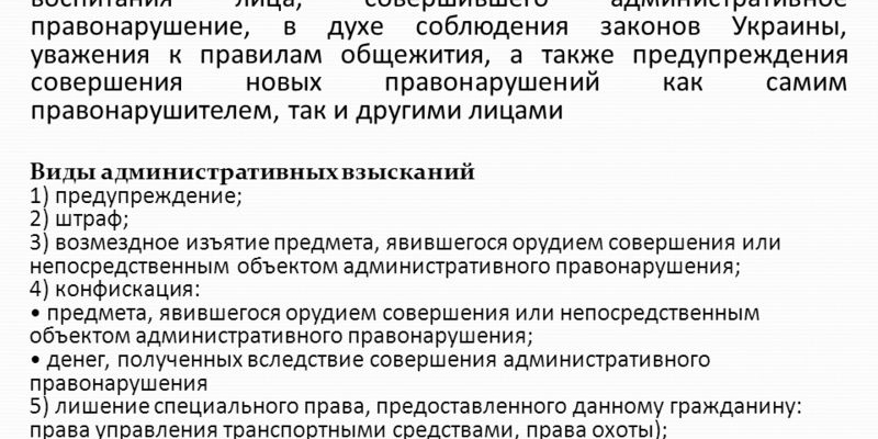Штрафы, как виды административно-правовой ответственности, представляют собой насильственное наступление для правонарушителя негативных последствий, предусмотренных официальным законодательством и направленных на воспитание правонарушителя и предупреждение повторения проступков с его стороны и со стороны третьих лиц (иных граждан).