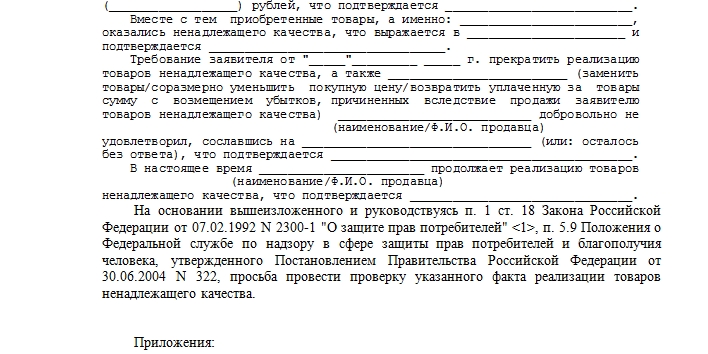 - Заключительная часть. Содержит список требований, список приложений к претензии.